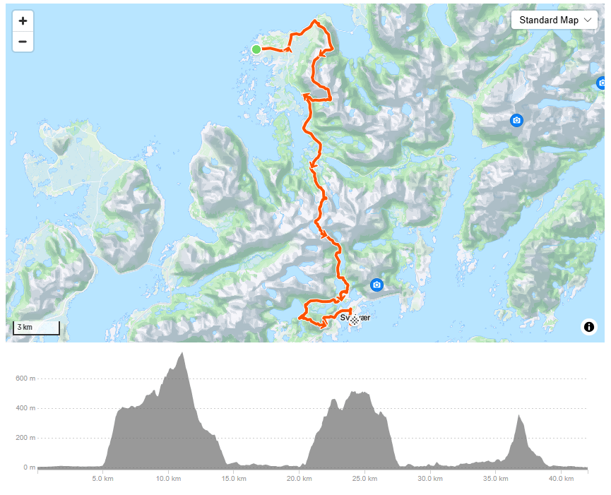 Vi er glade for å kunne introdusere 42km i 2026. Vi drar starten på denne tilbake til Laukvika. Buss til start vil bli inkludert for alle deltakere på maratondistansen. Løypa vil gå over Matmora, opp fra Haugen Gård, ny sti over Isvatnryggen (gammel ferdselssti), forbi Botnvatnet, ned til Sætra (nykloppet ved rørgata), ut til Røde Kors, forbi Strandelva, inn i Kongsmarka ved Lille Kongsvatn, over skibrua ved demninga, over Tjeldbergtinden og i mål i Svolvær. 42km og ca 2000 høydemeter. Aldersgrense: 18 år.